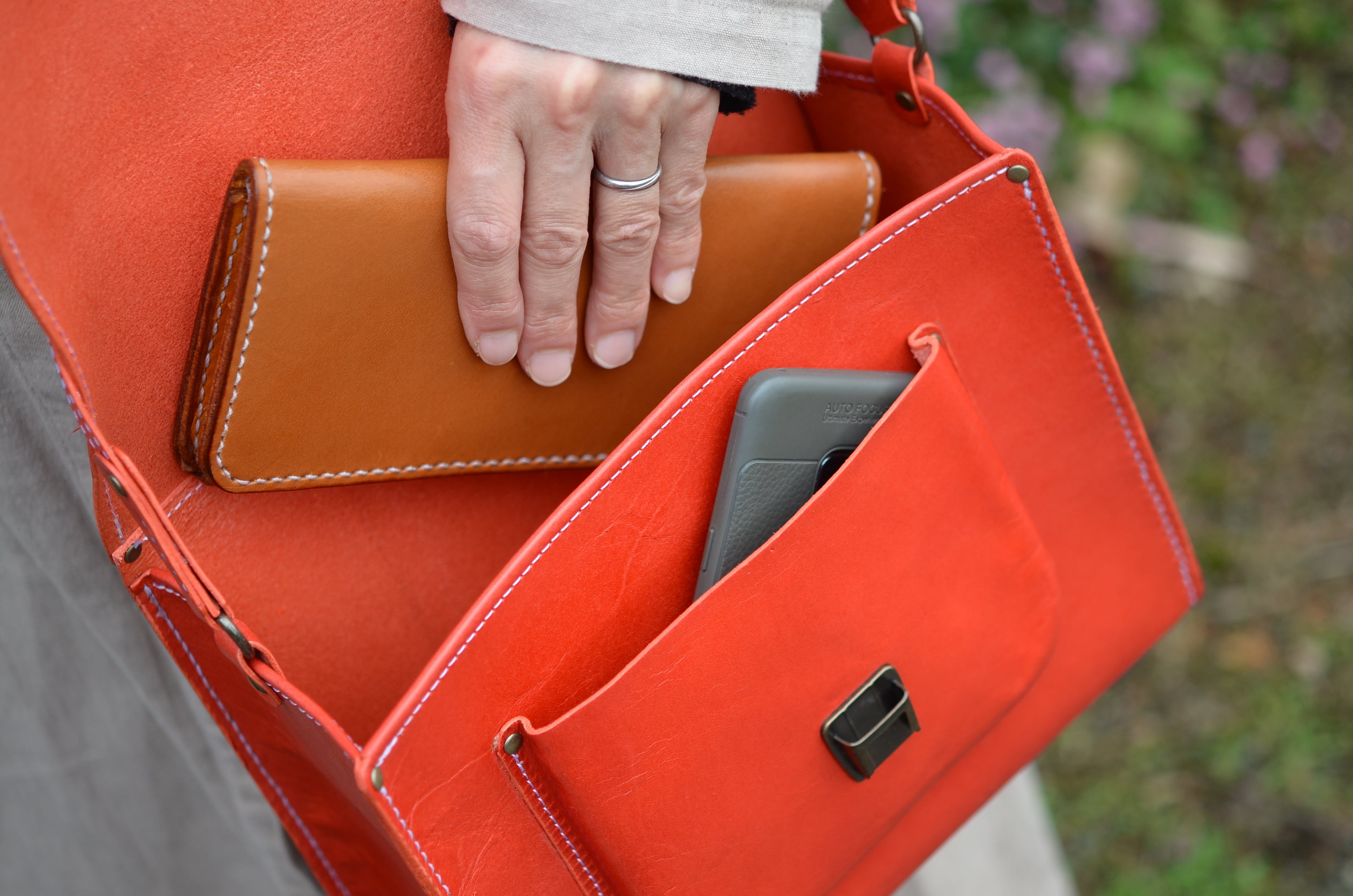スクエアデザインのシンプルなスタイルでオープンするとスマホなどがしまえるポケットとメインのバッグ部分も普段使いからちょっとしたお出かけまでに使える十分な容量です。