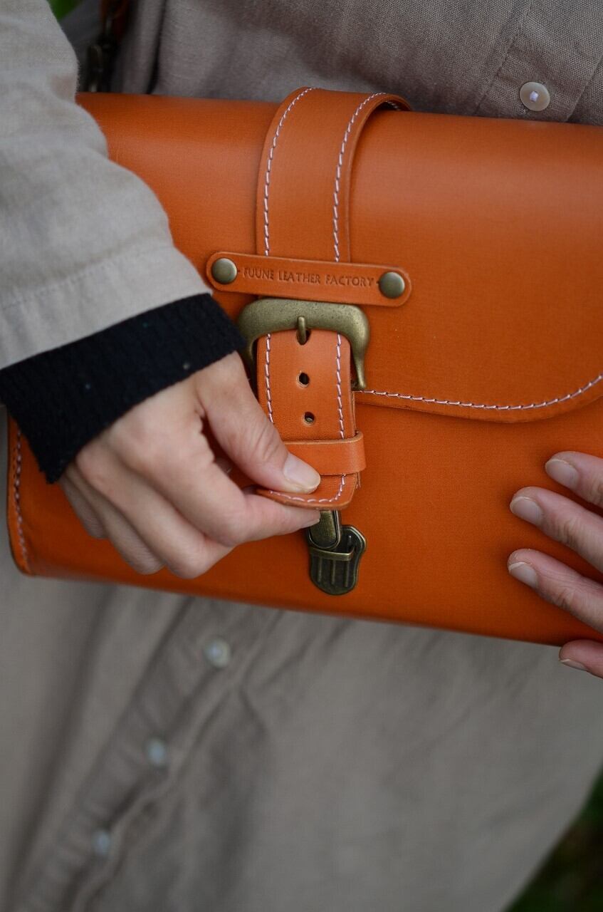 Fuuneleatherfactoryの定番、軽くてコシのあるイタリアンレザーを使用したボディバッグです。