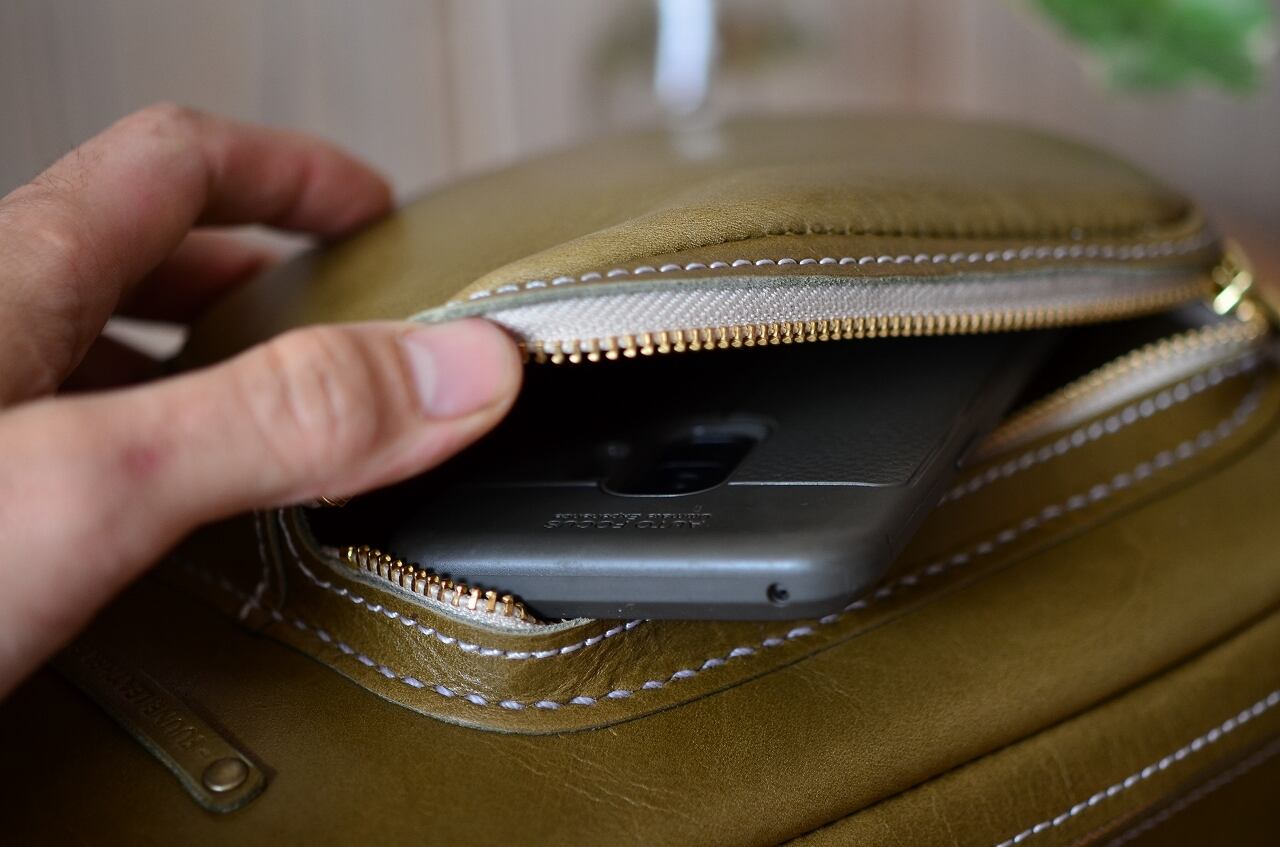小さいポケットにはスマホやカードケースなどを。