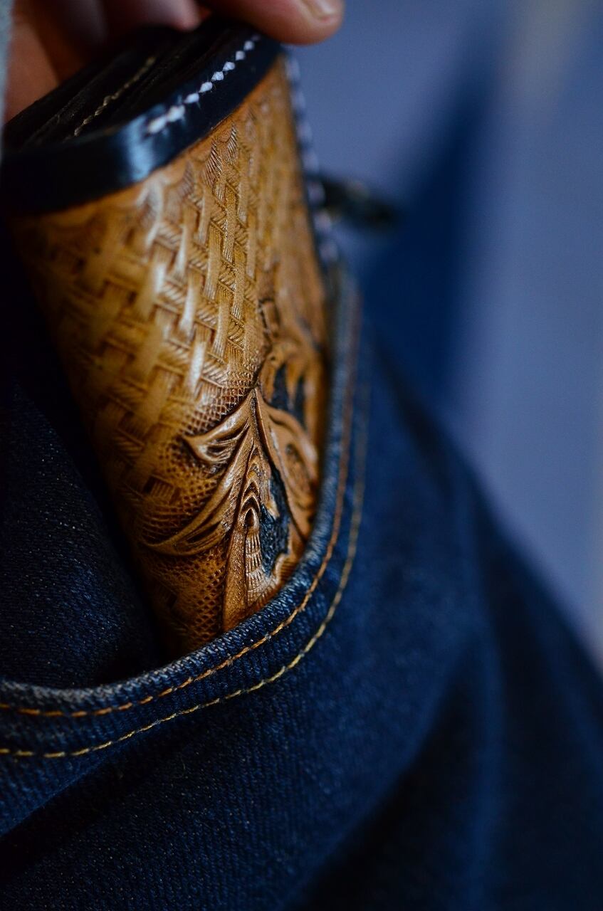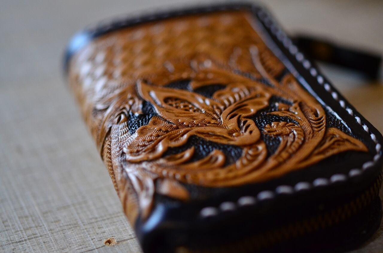 ヌメ革を使用し、美しいデザインを彫り込み仕上げました。